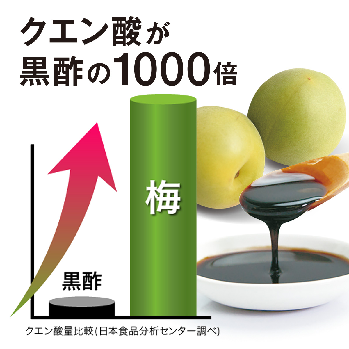 栄養豊富な梅を長時間に詰めて、わずかしか取れない希少な「梅肉エキス」を1粒にギュッと凝縮!生の梅や梅干しでは取れない、健康長寿で話題の「ムメフラール」が含まれ、「クエン酸」はなんと黒酢の1,000倍も!食塩や砂糖・保存料不使用!酸っぱい梅が苦手な方でも手軽に続けらる、健康サプリメントです。