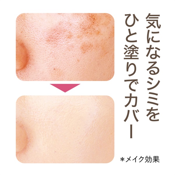 *シミを消す:メイク効果/日中シミケア:日やけによるシミ・そばかすを防ぐお手入れのこと/ビタミンC:整肌成分/2種の美容パウダー:(HDI/トリメチロールヘキシルラクトン)クロスポリマー、シリカ/若々しい肌をキープ:汗や衣服のこすれなどではがれた場合は、塗り直してください